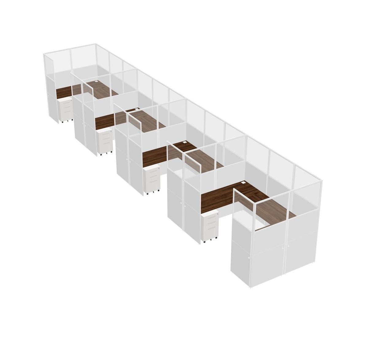 Système De Panneaux En U En Noyer Columbia Pour 4 Personnes + Tiroirs Mobiles En Métal Pour 4 Utilisateur(s)