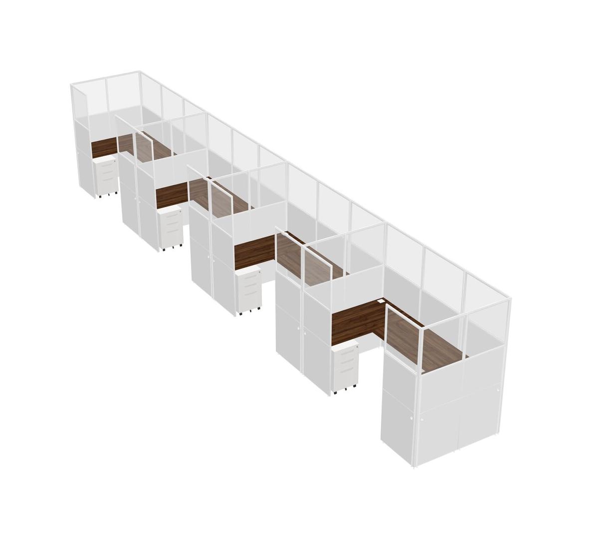 Système De Panneaux En U En Noyer Columbia Pour 4 Personnes + Tiroirs Mobiles En Métal Pour 4 Utilisateur(s)