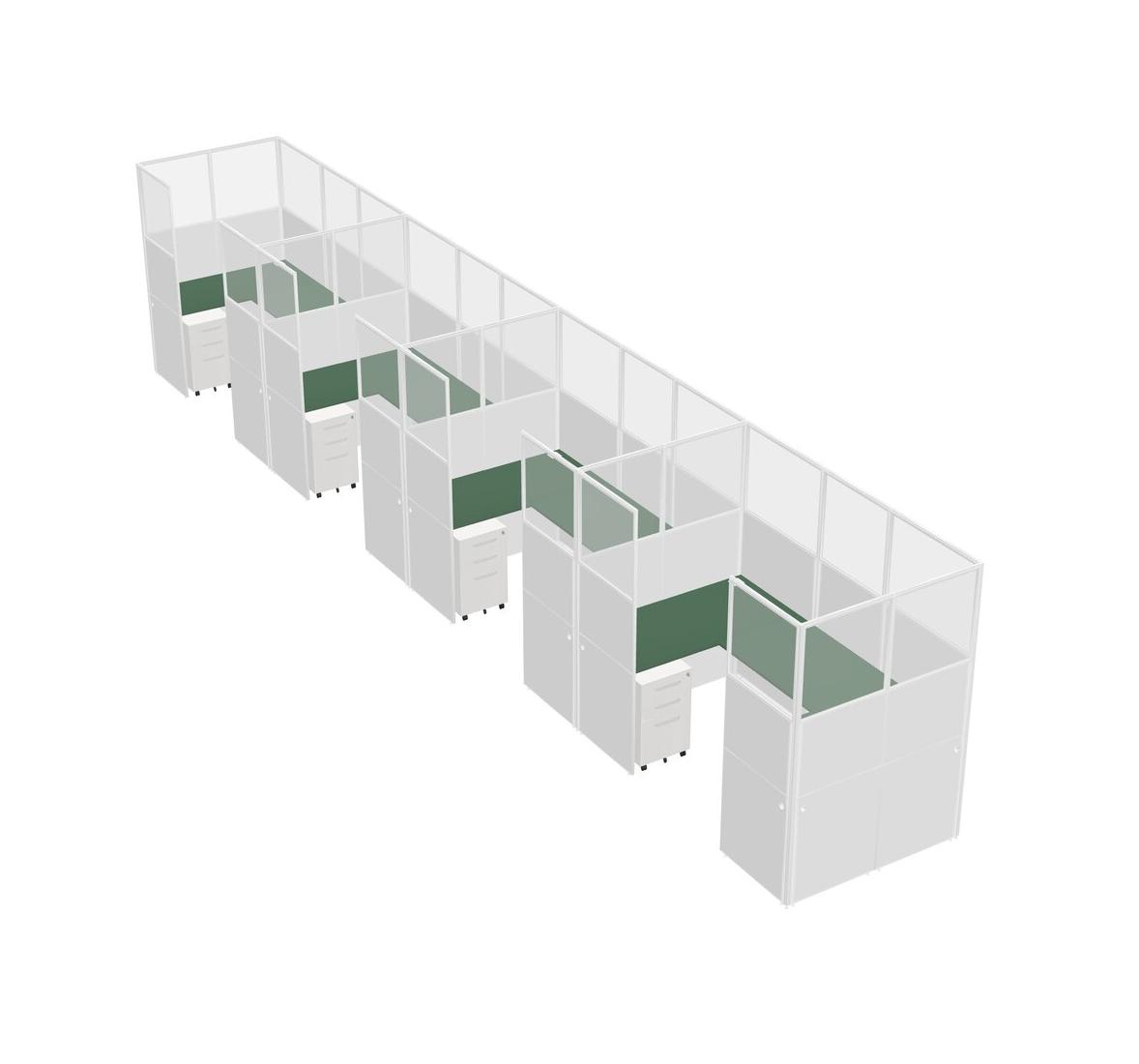 Système De Panneaux En U Vert Pour 4 Personnes + Tiroirs Mobiles En Métal Pour 4 Utilisateur(s)