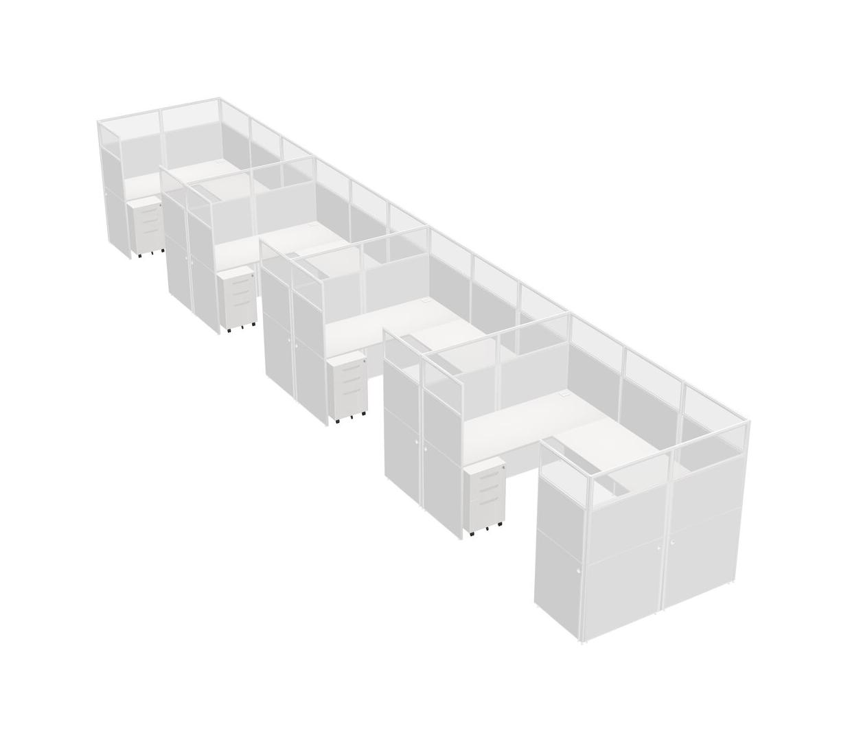 Système De Panneaux En U Blanc Pour 4 Personnes + Tiroirs Mobiles En Métal Pour 4 Utilisateur(s)