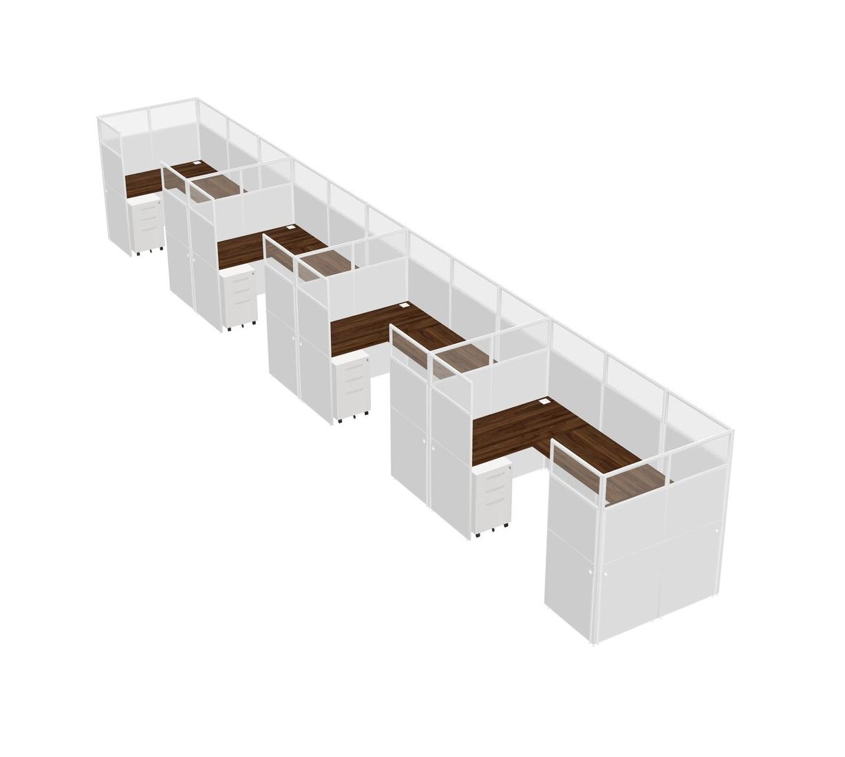 Système De Panneaux En U En Noyer Columbia Pour 4 Personnes + Tiroirs Mobiles En Métal Pour 4 Utilisateur(s)