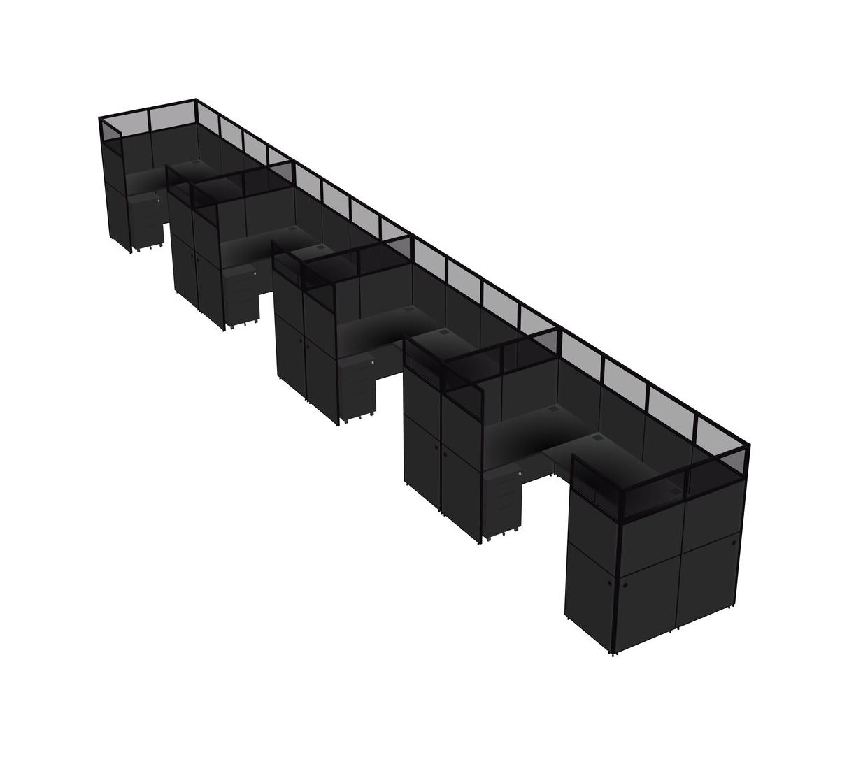 Système De Panneaux En U Noir Pour 4 Personnes + Tiroirs Mobiles En Métal Pour 4 Utilisateur(s)