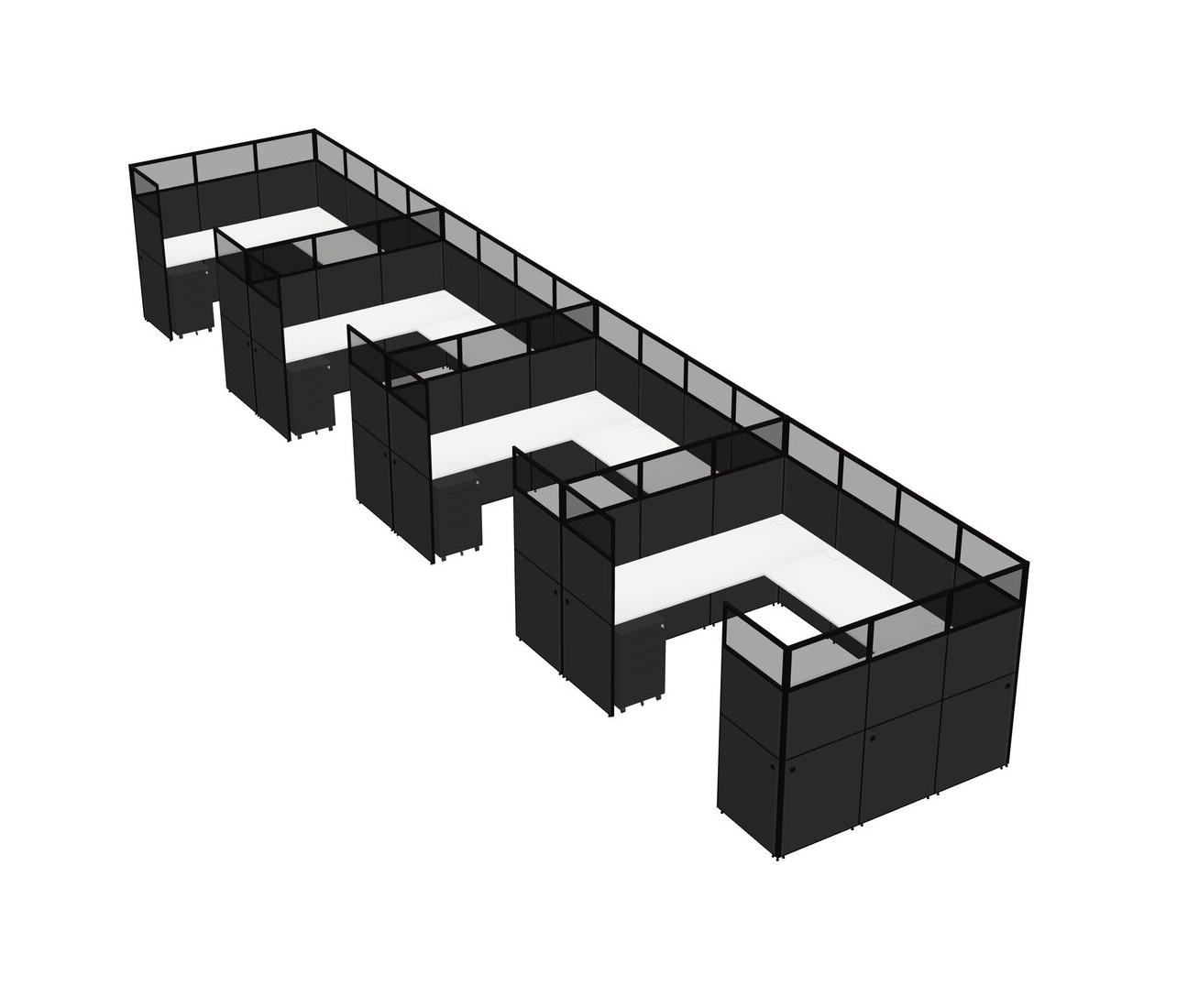 Système De Panneaux En U Blanc Pour 4 Personnes + Tiroirs Mobiles En Métal Pour 4 Utilisateur(s)