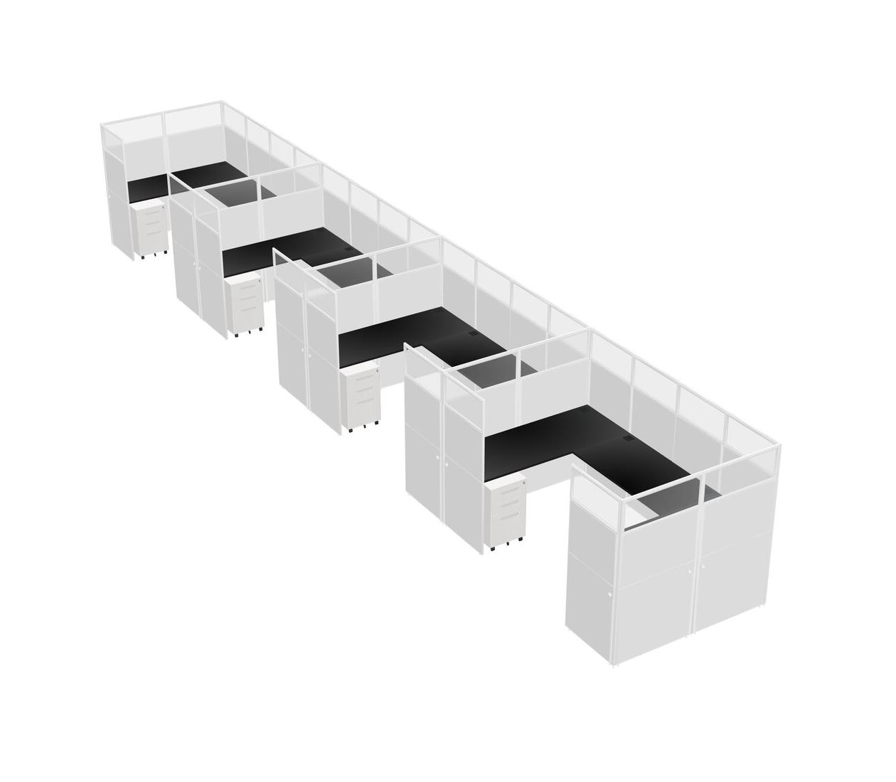 Système De Panneaux En U Noir Pour 4 Personnes + Tiroirs Mobiles En Métal Pour 4 Utilisateur(s)