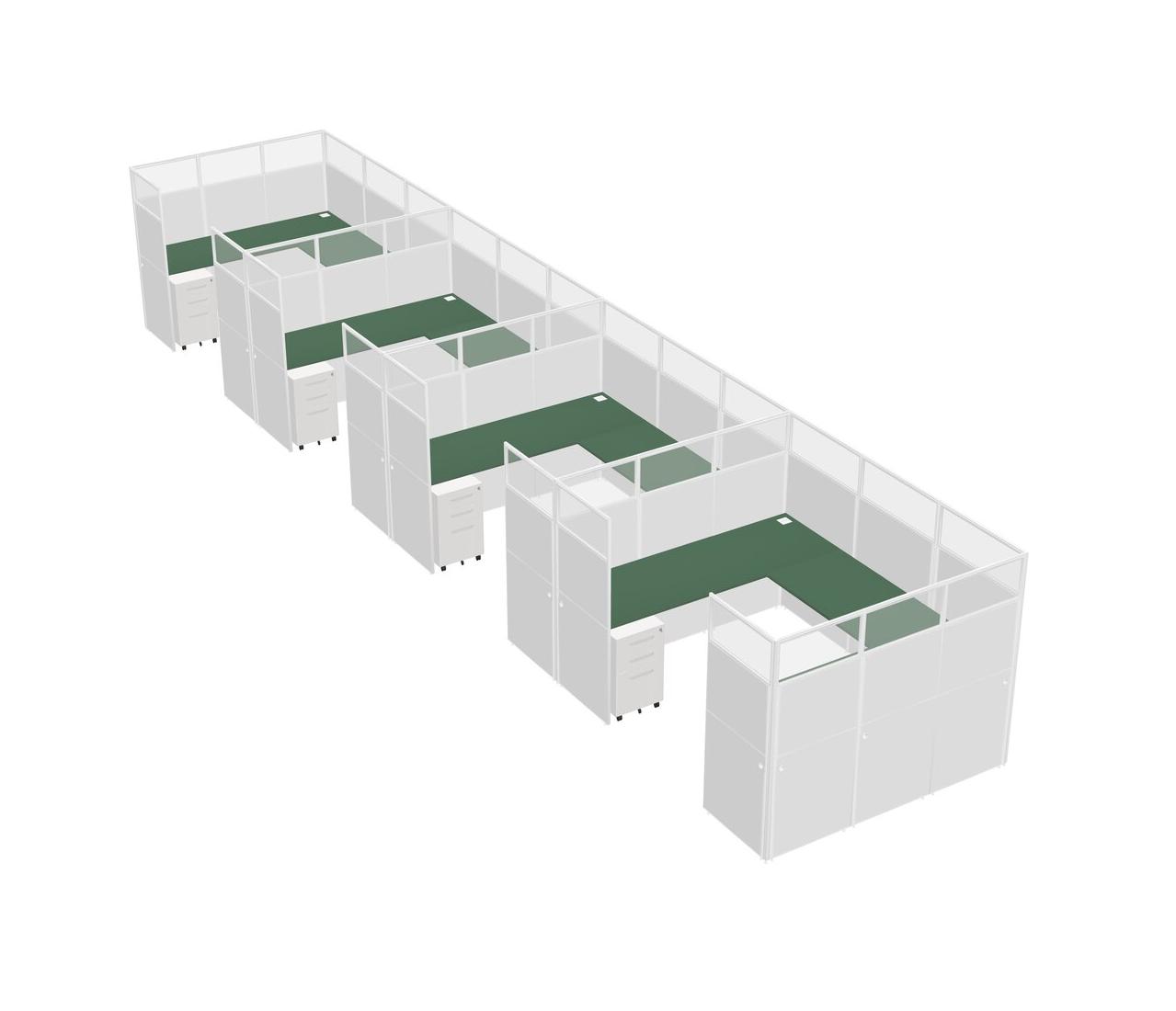 Système De Panneaux En U Vert Pour 4 Personnes + Tiroirs Mobiles En Métal Pour 4 Utilisateur(s)