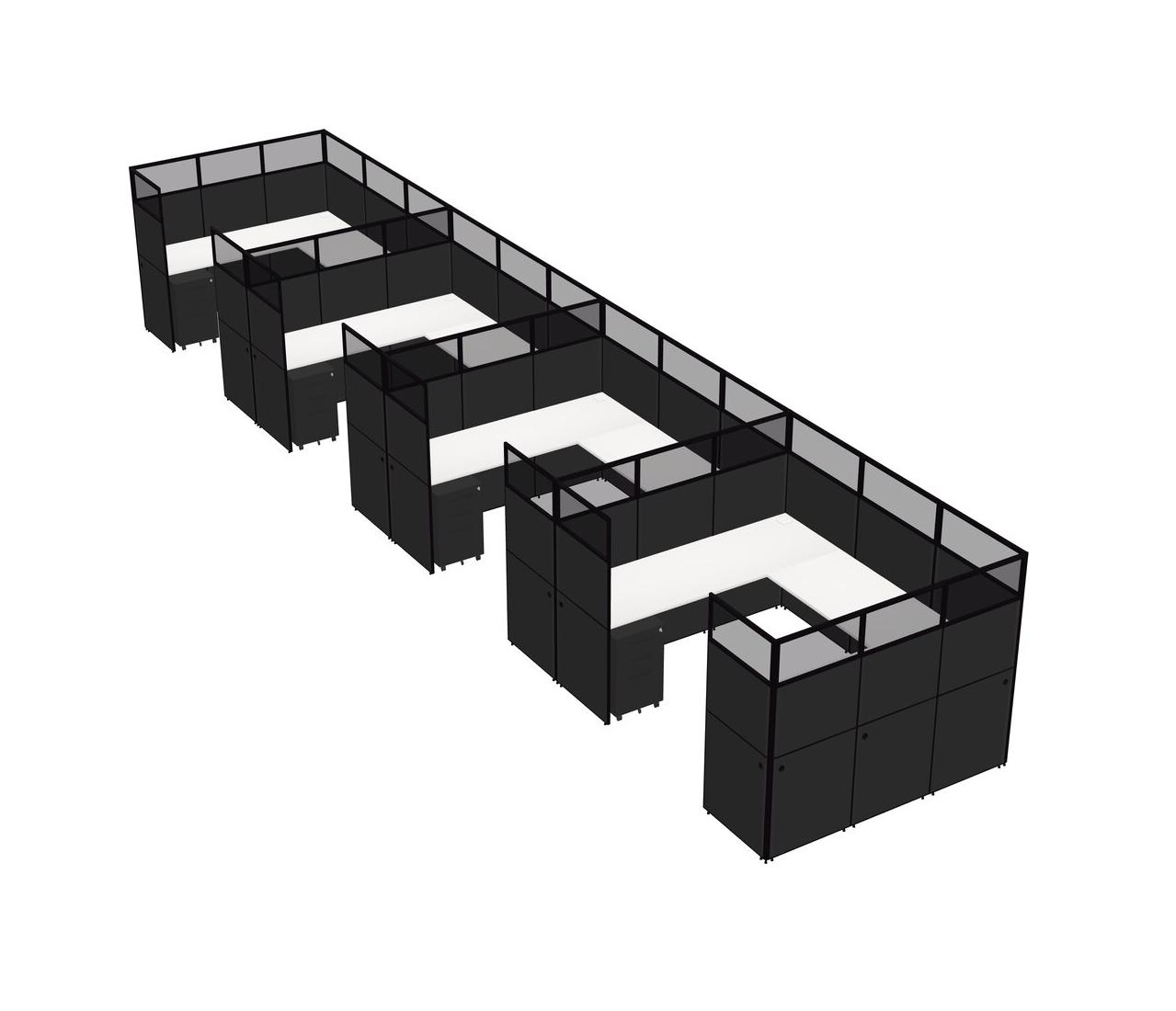 Système De Panneaux En U Blanc Pour 4 Personnes + Tiroirs Mobiles En Métal Pour 4 Utilisateur(s)