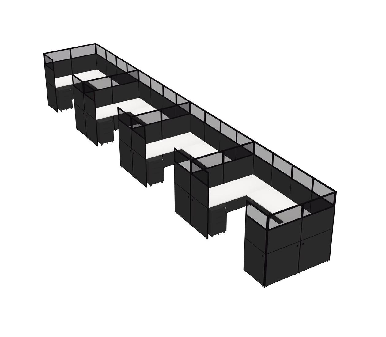 Système De Panneaux En U Blanc Pour 4 Personnes + Tiroirs Mobiles En Métal Pour 4 Utilisateur(s)