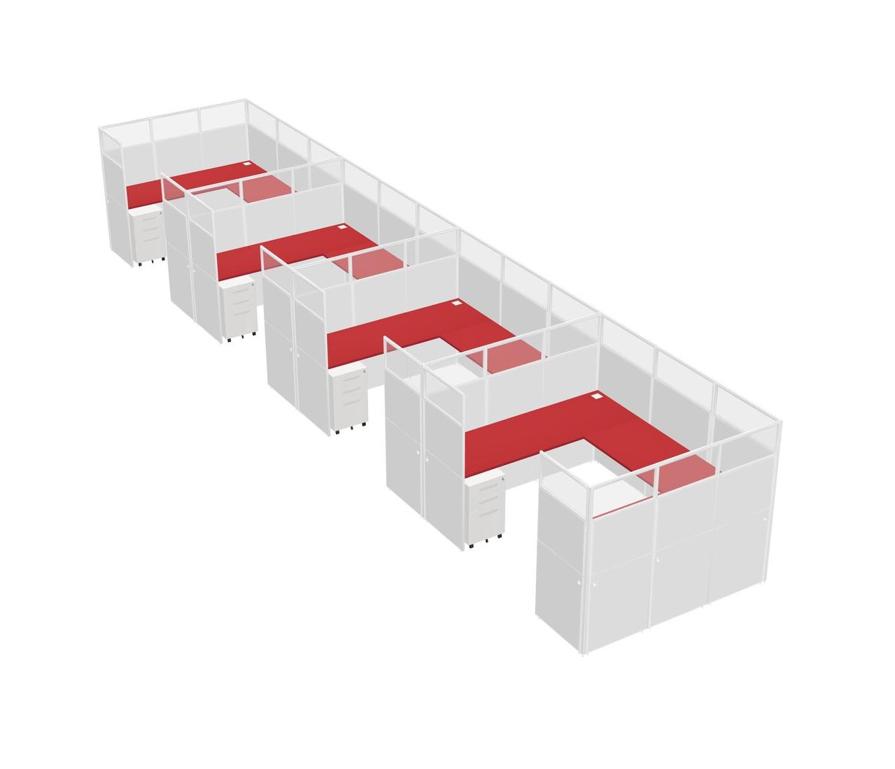 Système De Panneaux En U Prism Red Pour 4 Personnes + Tiroirs Mobiles En Métal Pour 4 Utilisateur(s)