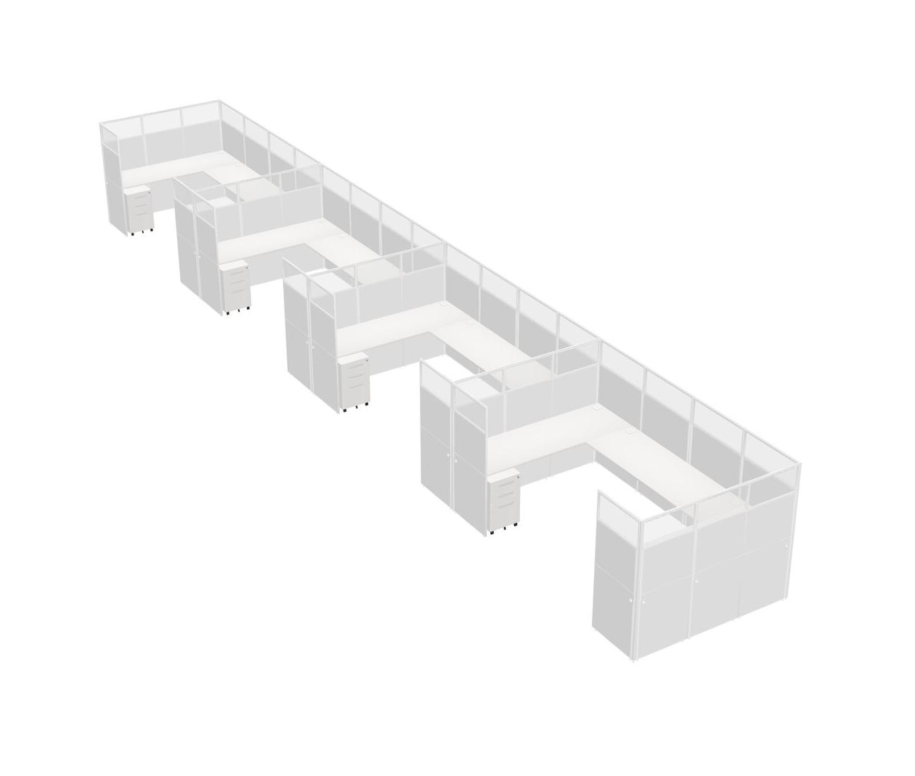 Système De Panneaux En U Blanc Pour 4 Personnes + Tiroirs Mobiles En Métal Pour 4 Utilisateur(s)