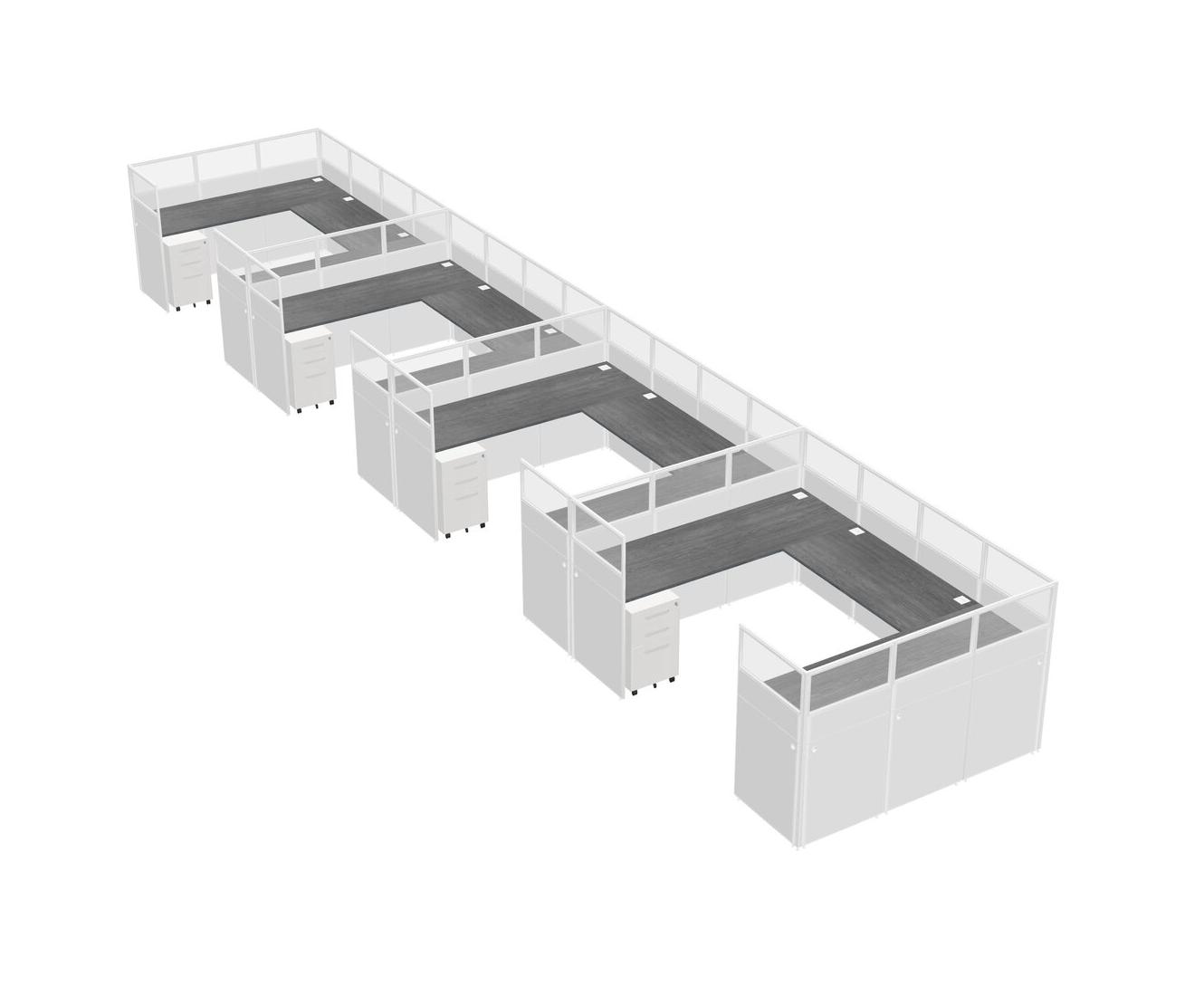 Système De Panneaux En U Gris Pour 4 Personnes + Tiroirs Mobiles En Métal Pour 4 Utilisateur(s)