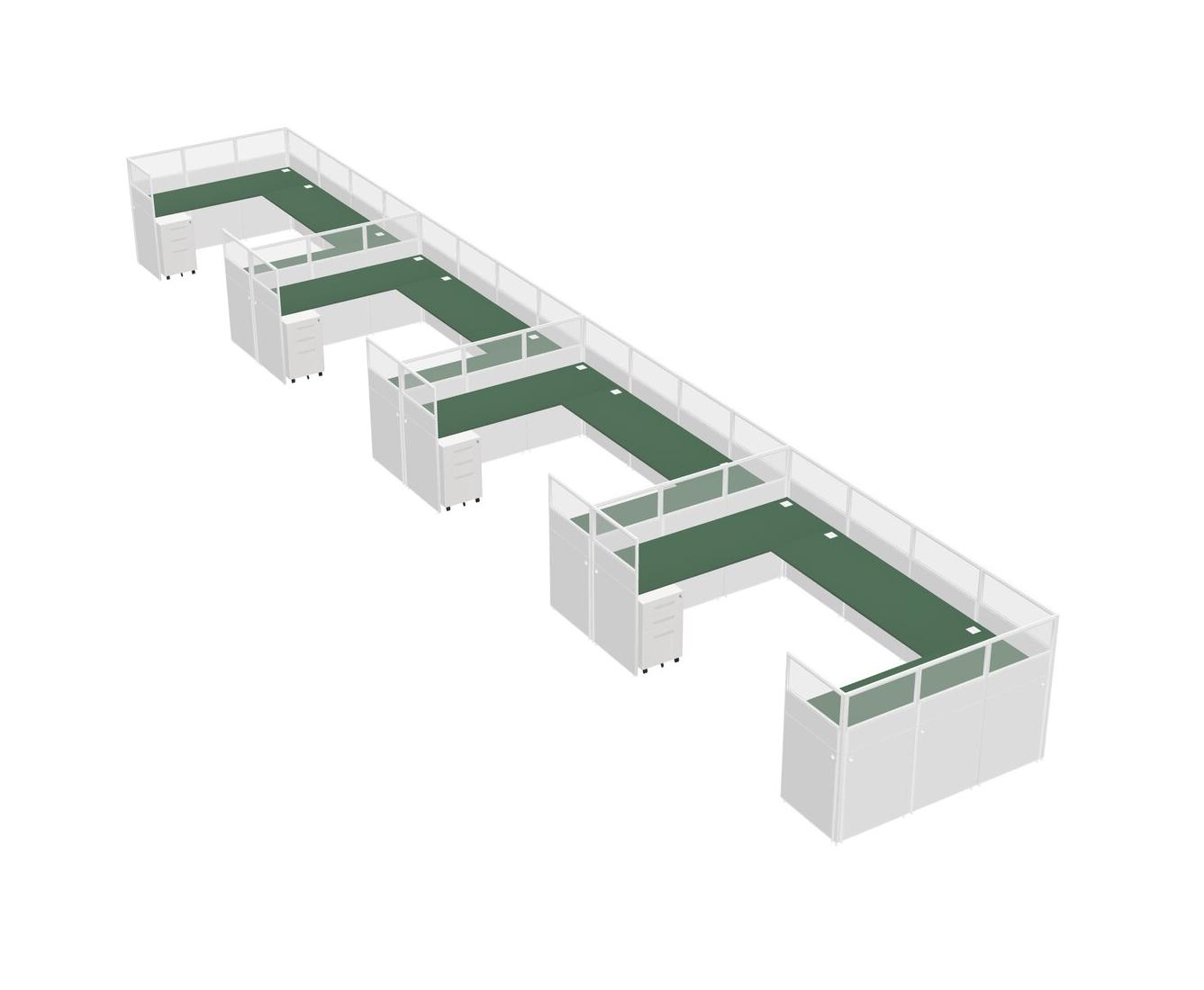 Système De Panneaux En U Vert Pour 4 Personnes + Tiroirs Mobiles En Métal Pour 4 Utilisateur(s)