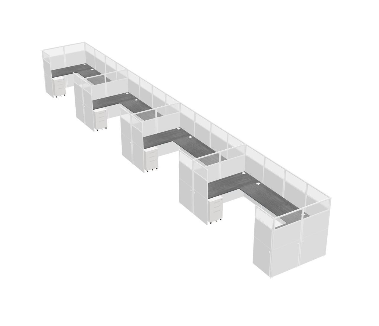 Système De Panneaux En U Gris Pour 4 Personnes + Tiroirs Mobiles En Métal Pour 4 Utilisateur(s)