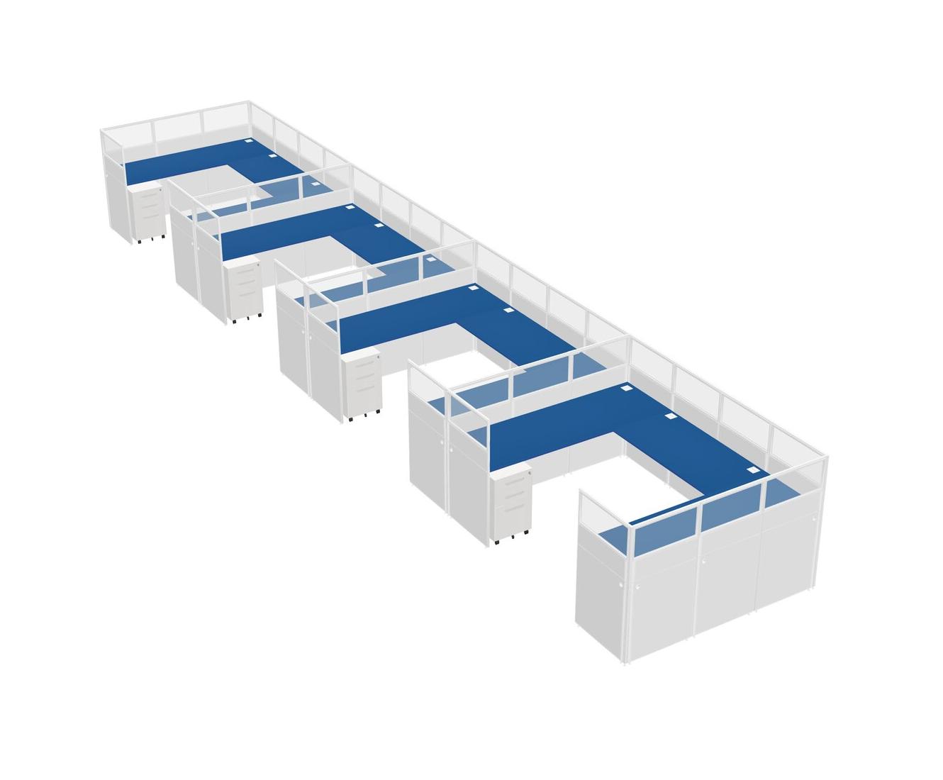 Système De Panneaux En U Prism Blue Pour 4 Personnes + Tiroirs Mobiles En Métal Pour 4 Utilisateur(s)