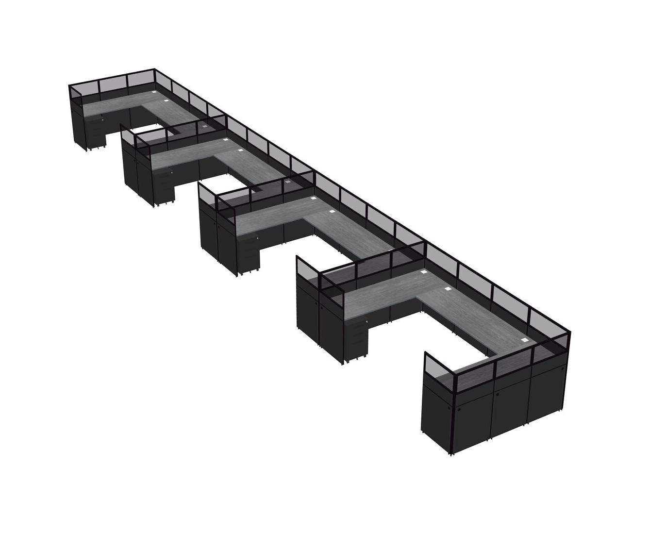 Système De Panneaux En U Gris Pour 4 Personnes + Tiroirs Mobiles En Métal Pour 4 Utilisateur(s)
