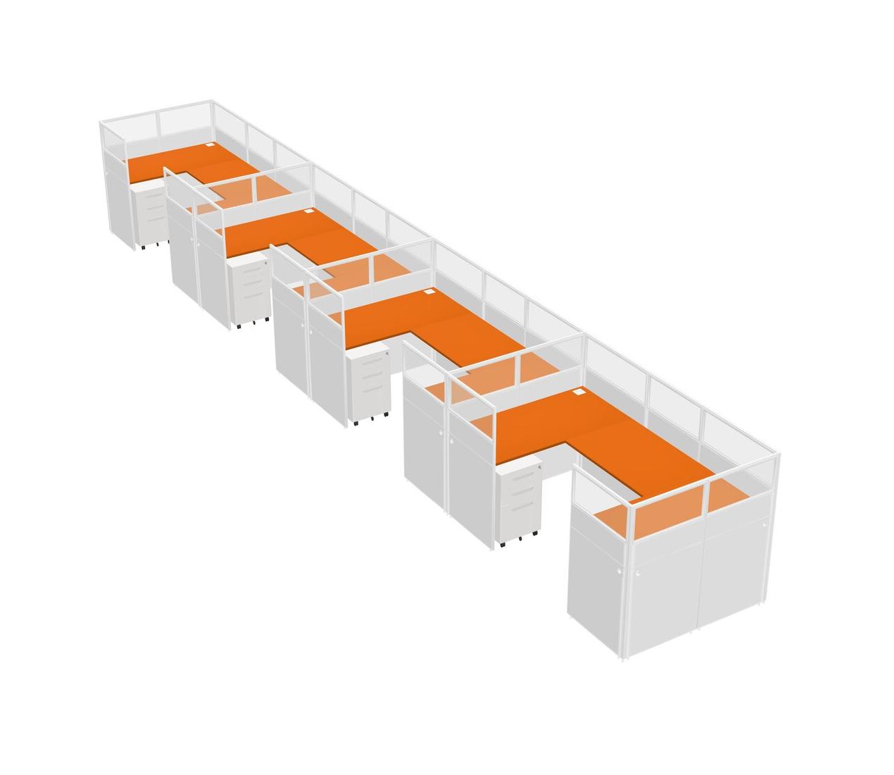Système De Panneaux En U Orange Pour 4 Personnes + Tiroirs Mobiles En Métal Pour 4 Utilisateur(s)