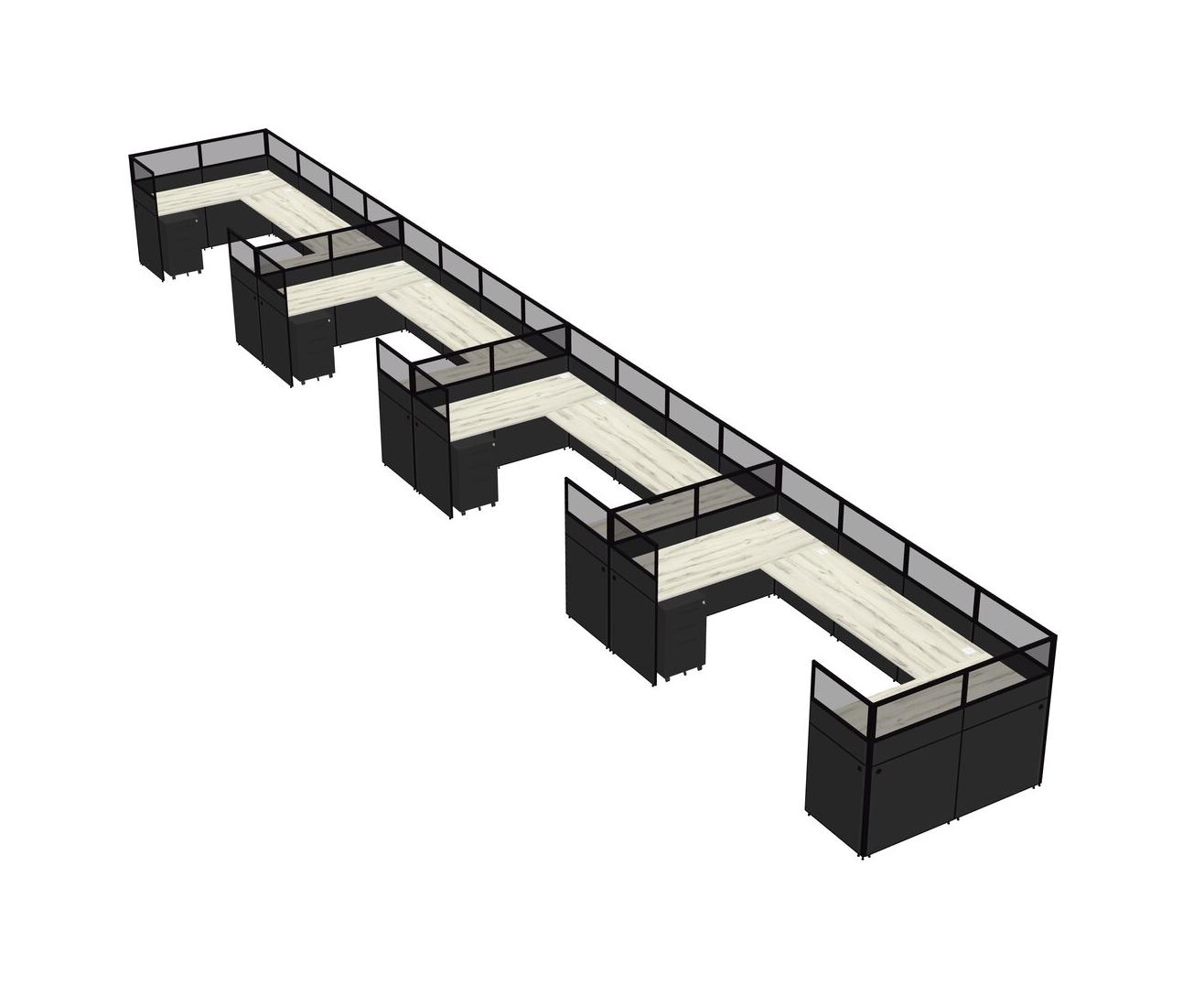 Système De Panneaux En U Heinne Holz Pour 4 Personnes + Tiroirs Mobiles En Métal Pour 4 Utilisateur(s)