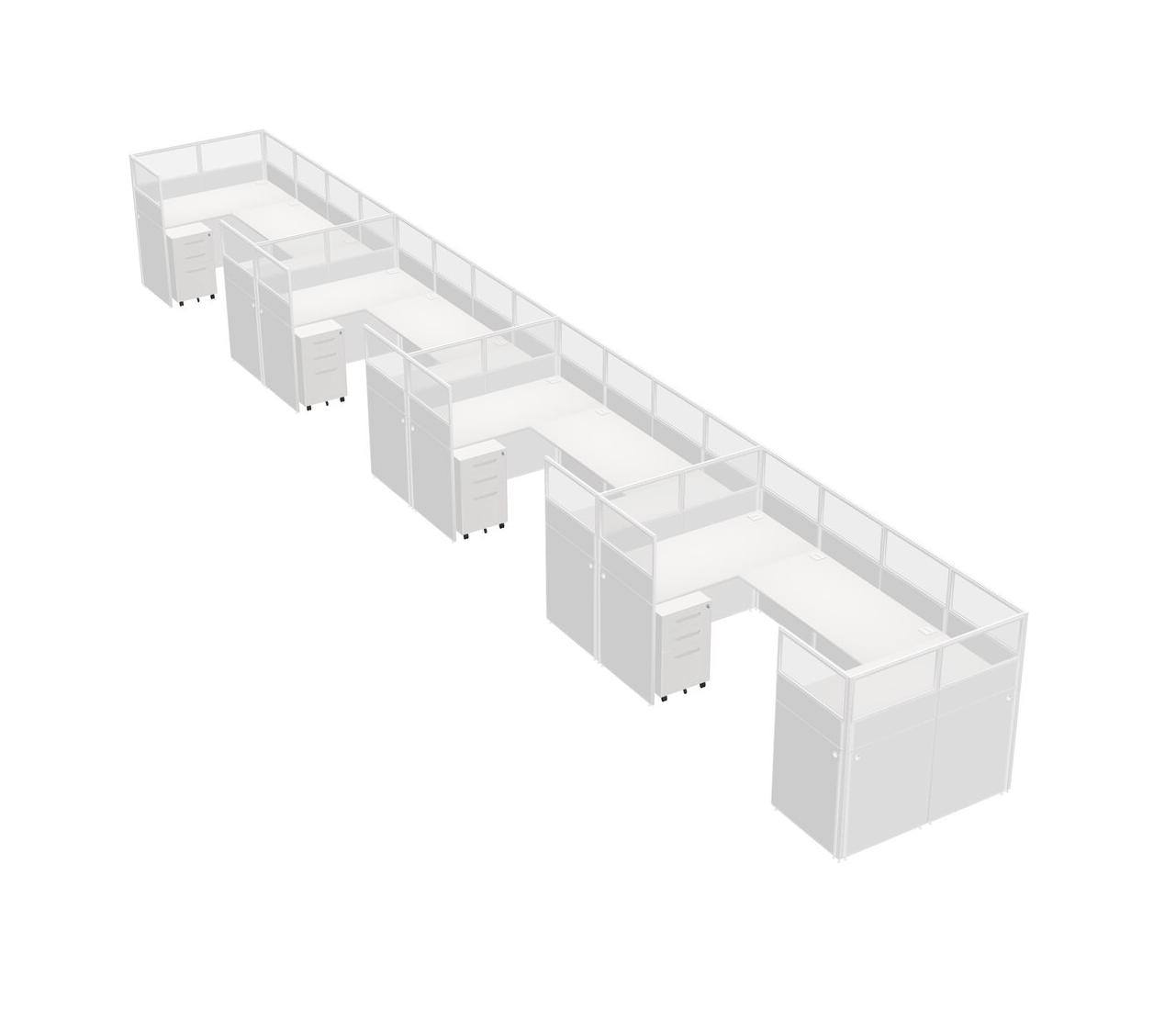 Système De Panneaux En U Blanc Pour 4 Personnes + Tiroirs Mobiles En Métal Pour 4 Utilisateur(s)