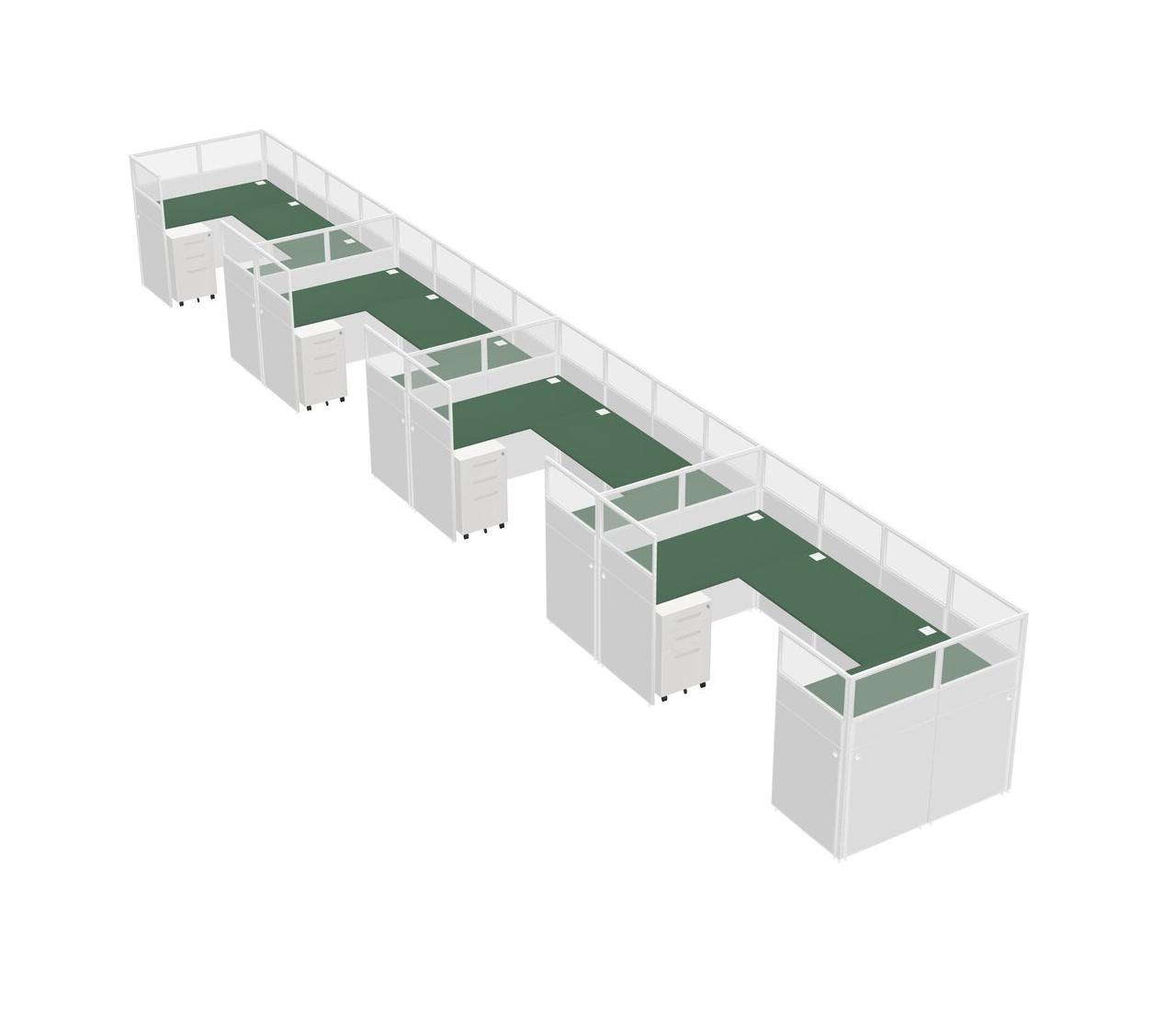 Système De Panneaux En U Vert Pour 4 Personnes + Tiroirs Mobiles En Métal Pour 4 Utilisateur(s)
