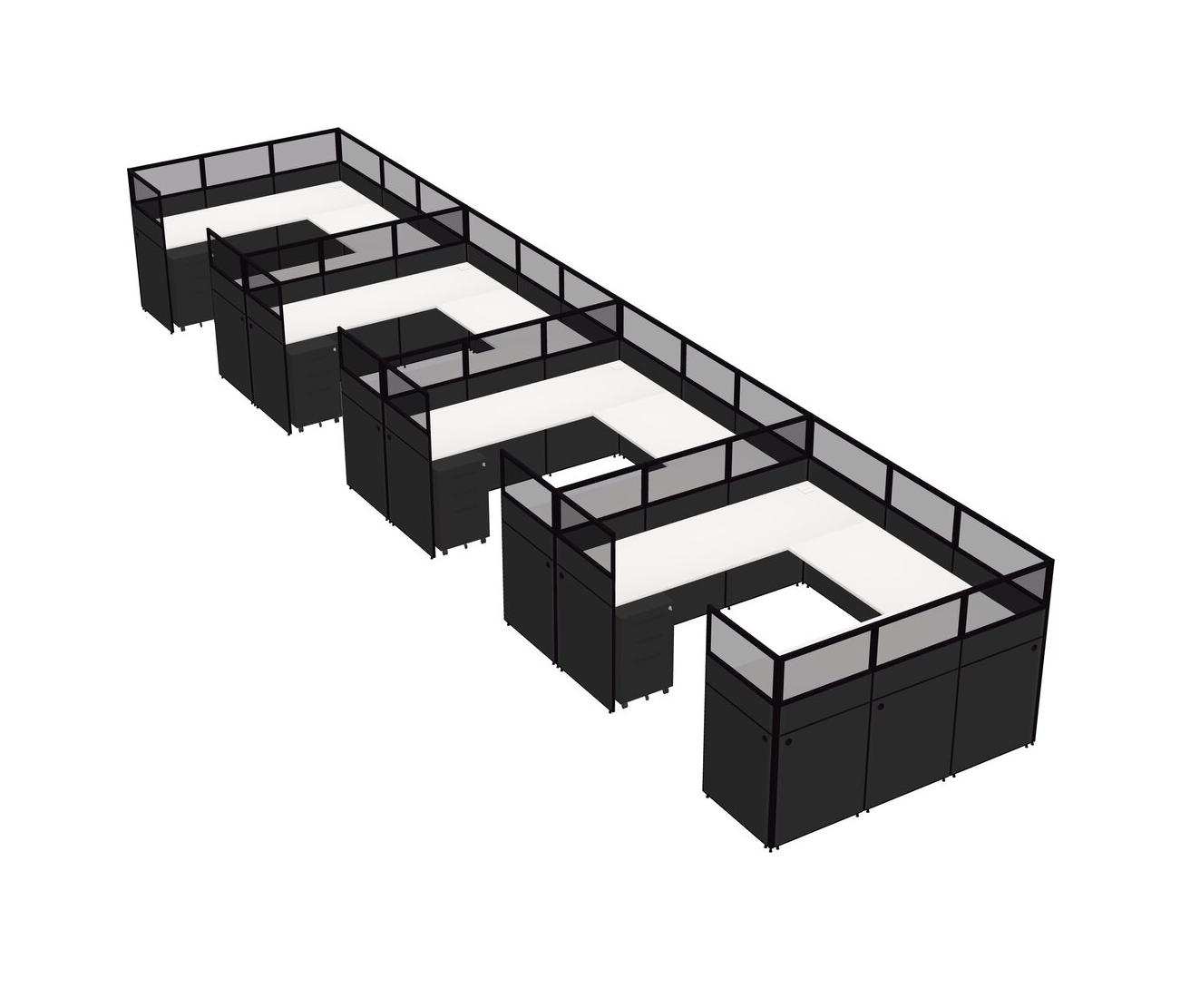 Système De Panneaux En U Blanc Pour 4 Personnes + Tiroirs Mobiles En Métal Pour 4 Utilisateur(s)