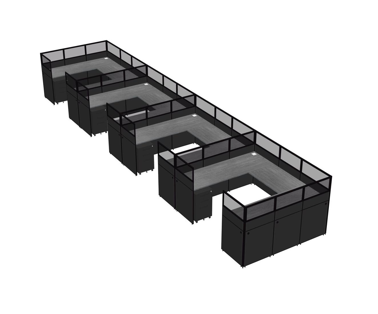 Système De Panneaux En U Gris Pour 4 Personnes + Tiroirs Mobiles En Métal Pour 4 Utilisateur(s)