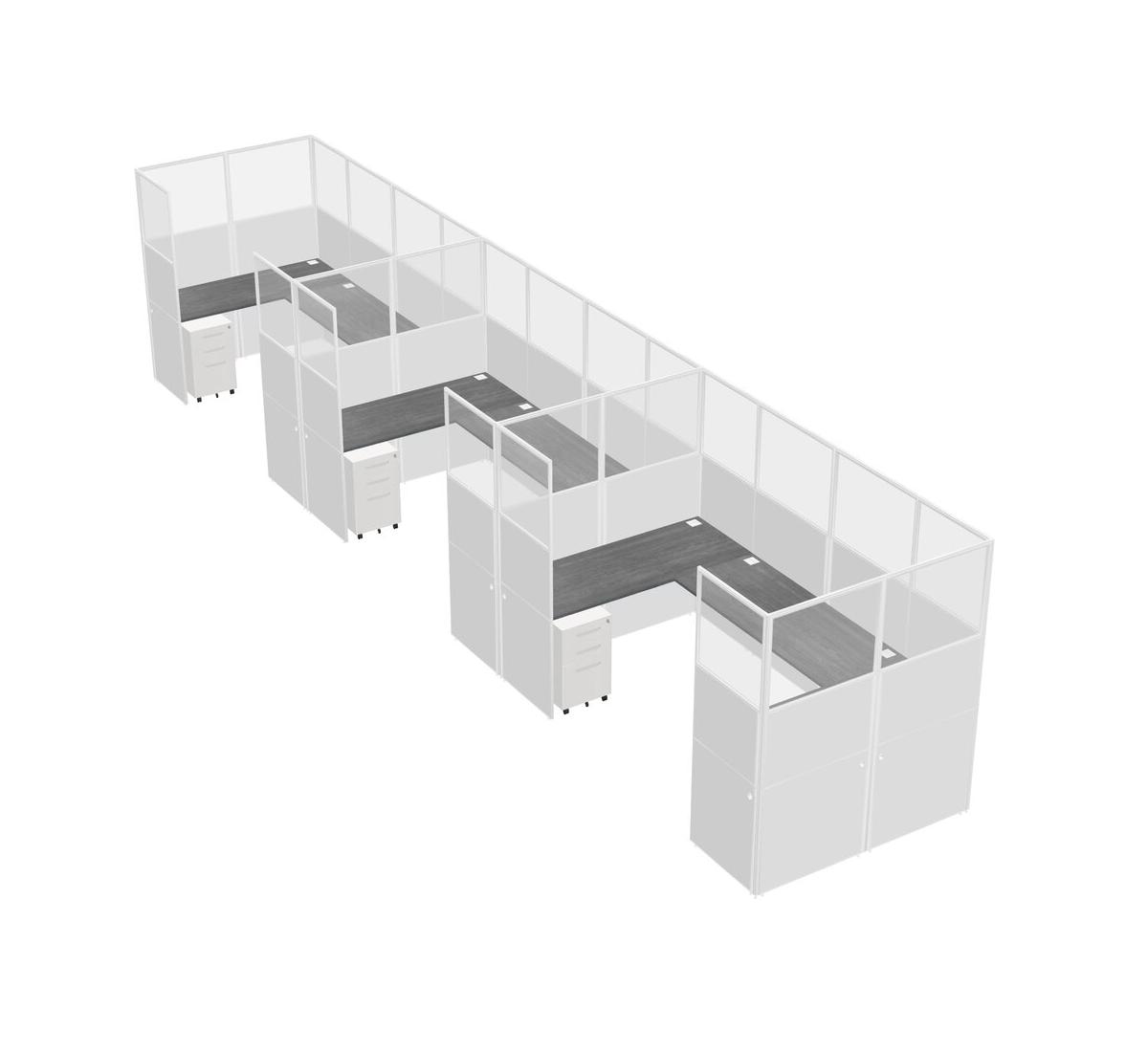 Système De Panneaux En U Gris Pour 3 Personnes + Tiroirs Mobiles En Métal Pour 3 Utilisateur(s)