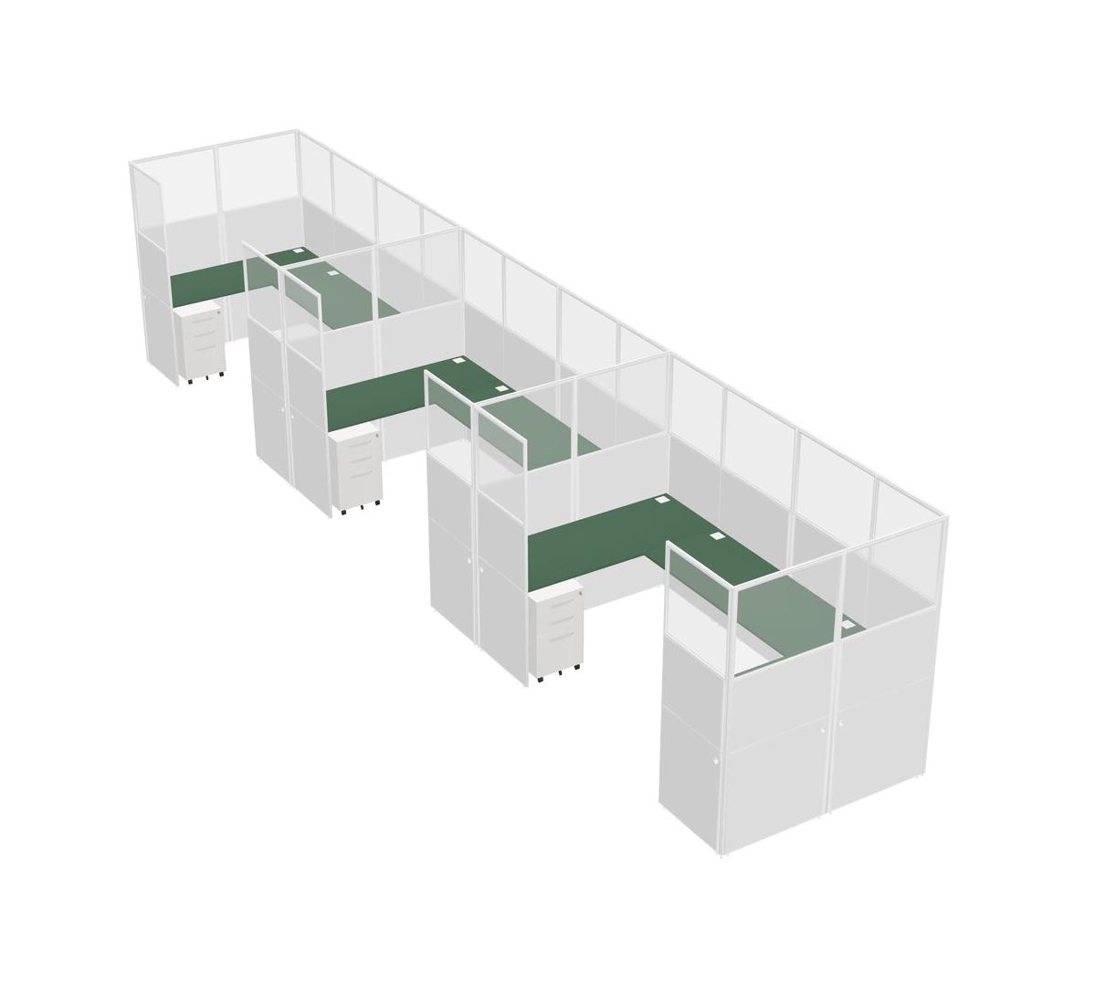 Système De Panneaux En U Vert Pour 3 Personnes + Tiroirs Mobiles En Métal Pour 3 Utilisateur(s)