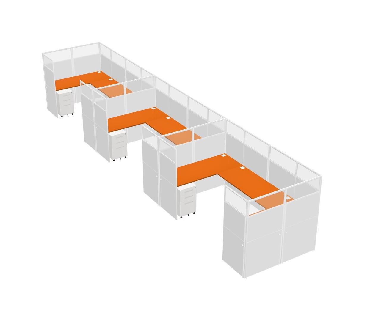 Système De Panneaux En U Orange Pour 3 Personnes + Tiroirs Mobiles En Métal Pour 3 Utilisateur(s)