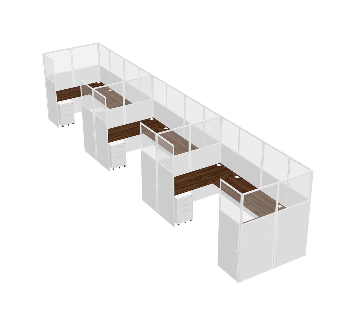 Système De Panneaux En U En Noyer Columbia Pour 3 Personnes + Tiroirs Mobiles En Métal Pour 3 Utilisateur(s)