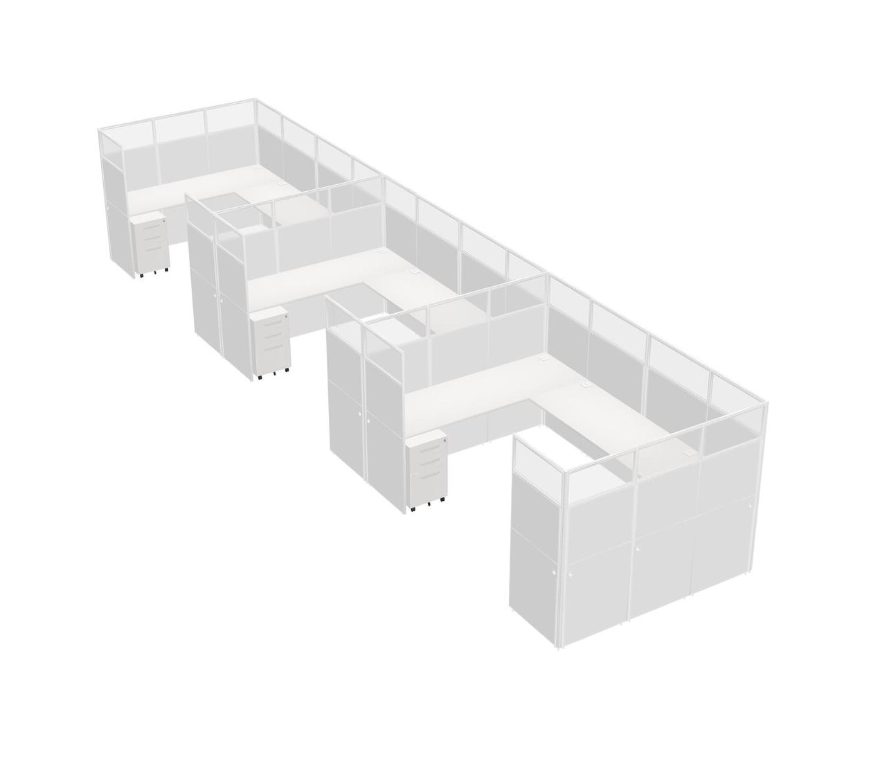 Système De Panneaux En U Blanc Pour 3 Personnes + Tiroirs Mobiles En Métal Pour 3 Utilisateur(s)