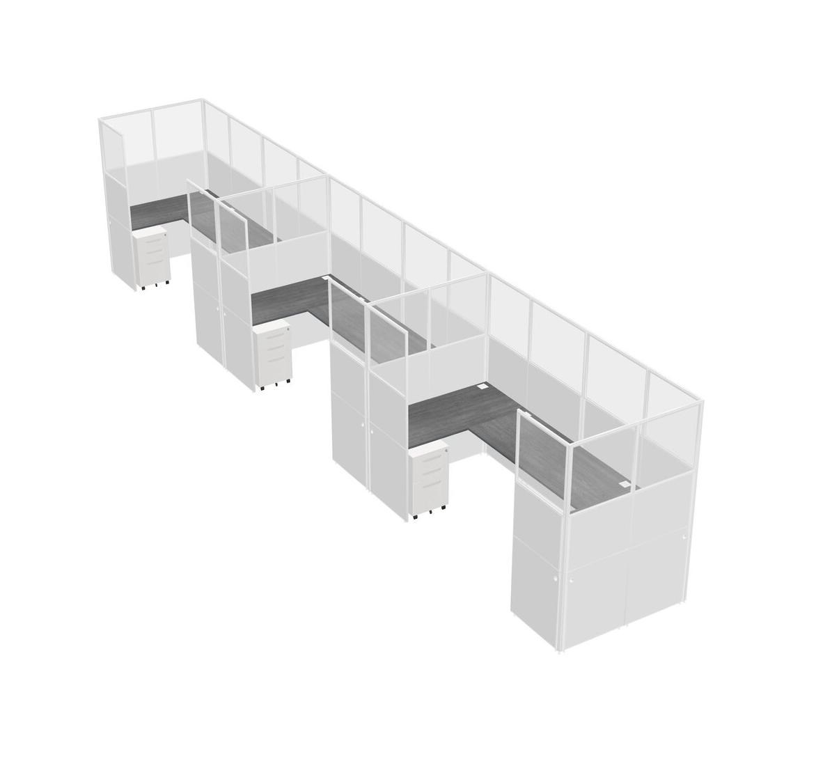 Système De Panneaux En U Gris Pour 3 Personnes + Tiroirs Mobiles En Métal Pour 3 Utilisateur(s)