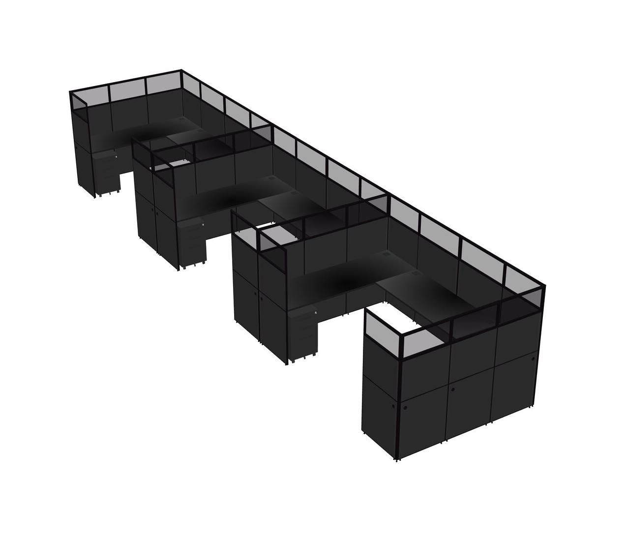 Système De Panneaux En U Noir Pour 3 Personnes + Tiroirs Mobiles En Métal Pour 3 Utilisateur(s)