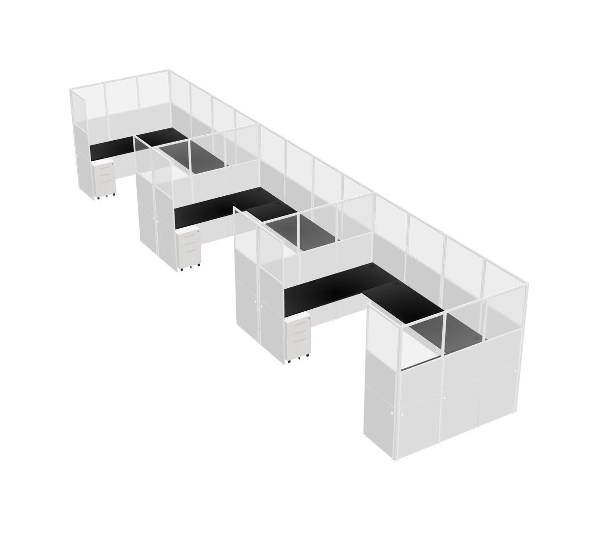 Système De Panneaux En U Noir Pour 3 Personnes + Tiroirs Mobiles En Métal Pour 3 Utilisateur(s)