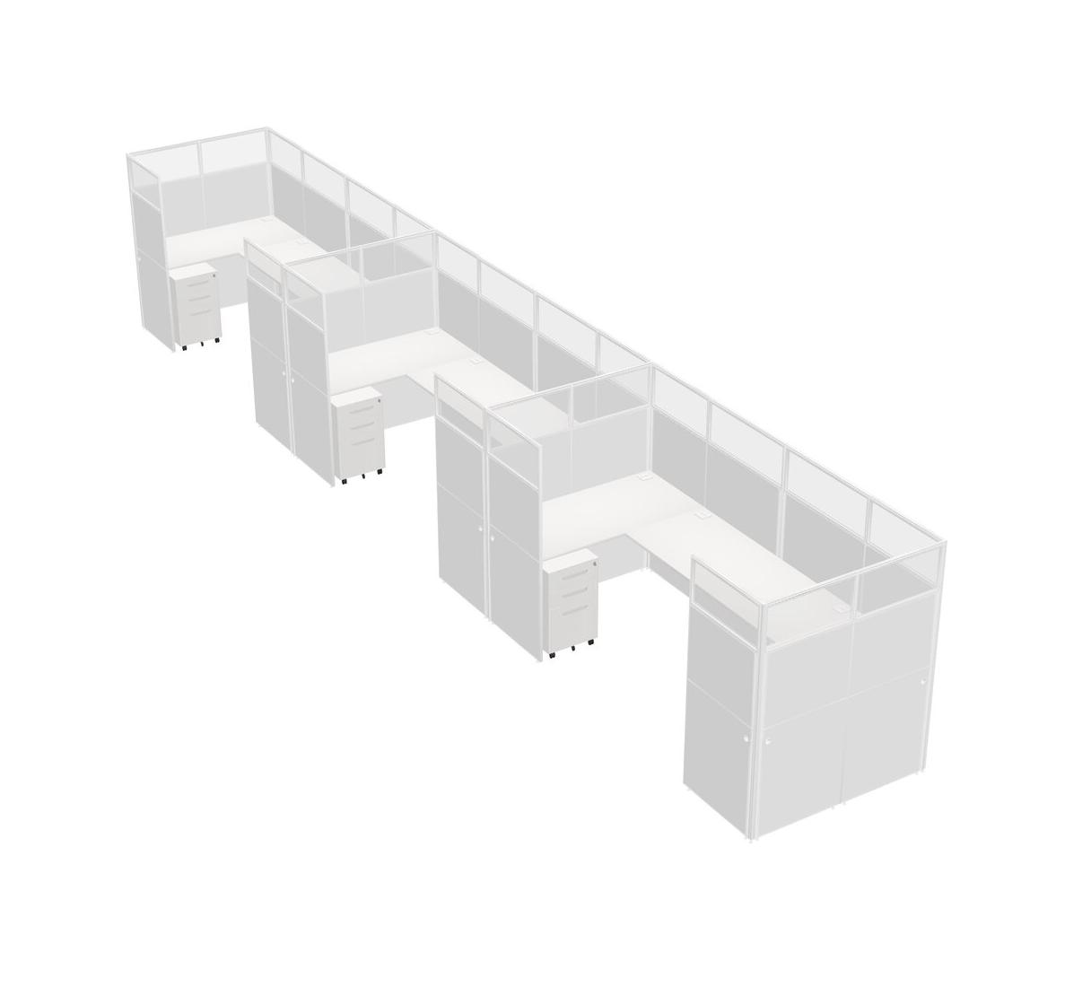 Système De Panneaux En U Blanc Pour 3 Personnes + Tiroirs Mobiles En Métal Pour 3 Utilisateur(s)