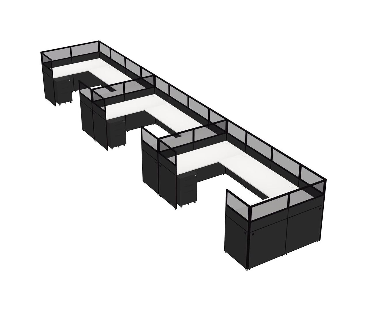 Système De Panneaux En U Blanc Pour 3 Personnes + Tiroirs Mobiles En Métal Pour 3 Utilisateur(s)