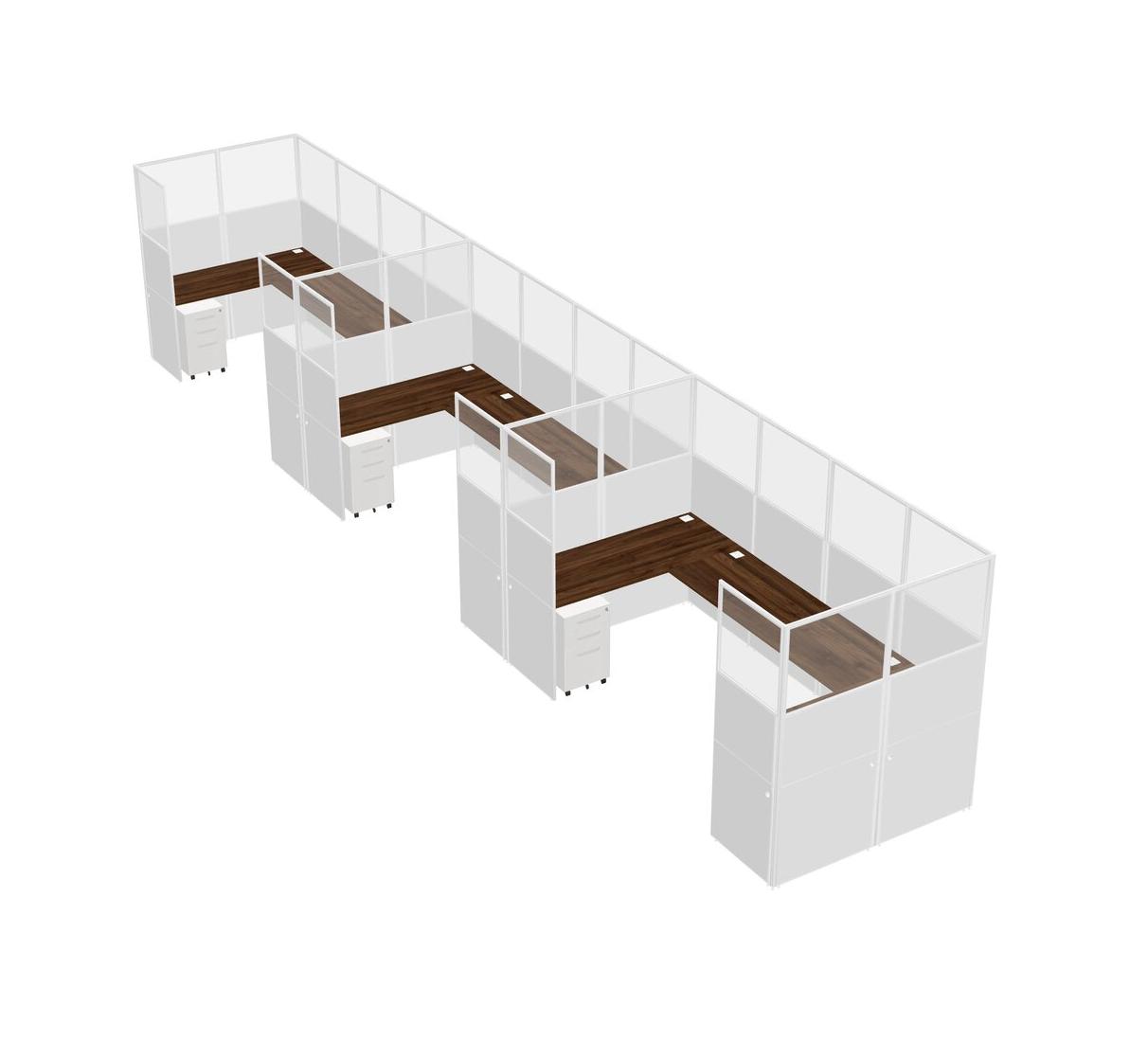 Système De Panneaux En U En Noyer Columbia Pour 3 Personnes + Tiroirs Mobiles En Métal Pour 3 Utilisateur(s)