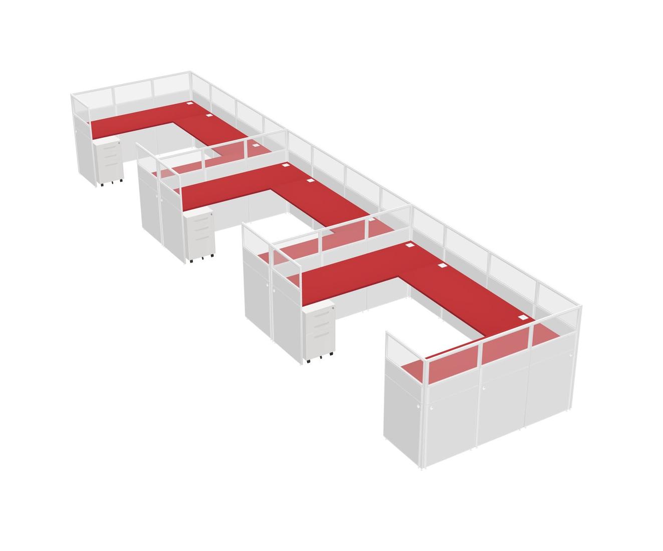 Système De Panneaux En U Prism Red Pour 3 Personnes + Tiroirs Mobiles En Métal Pour 3 Utilisateur(s)