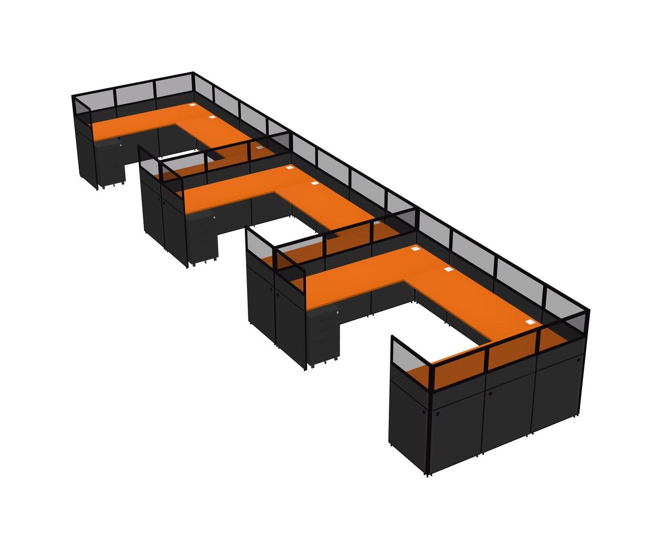 Système De Panneaux En U Orange Pour 3 Personnes + Tiroirs Mobiles En Métal Pour 3 Utilisateur(s)