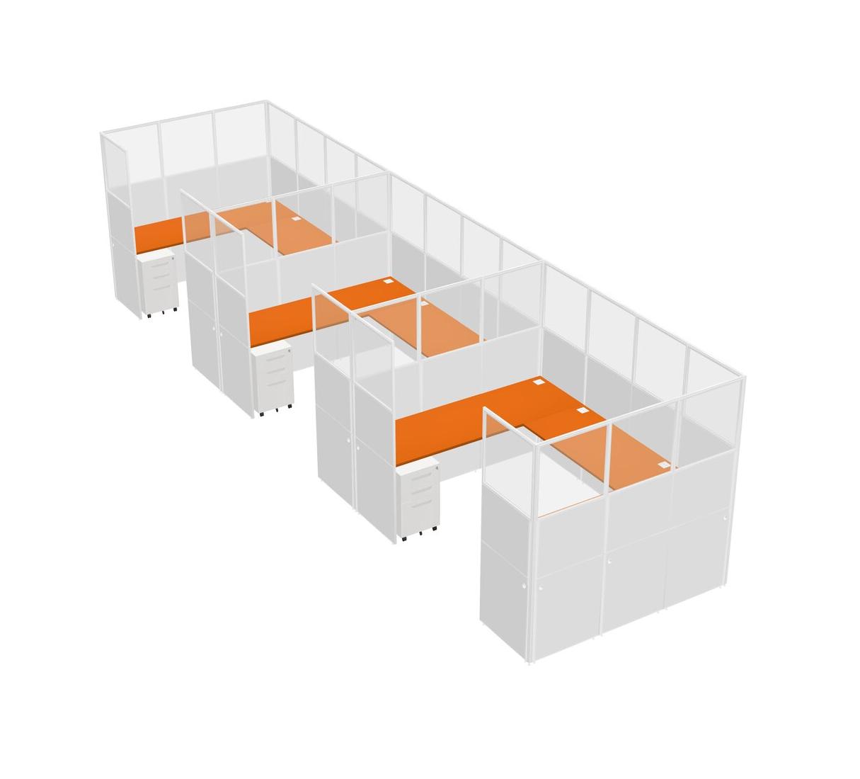 Système De Panneaux En U Orange Pour 3 Personnes + Tiroirs Mobiles En Métal Pour 3 Utilisateur(s)