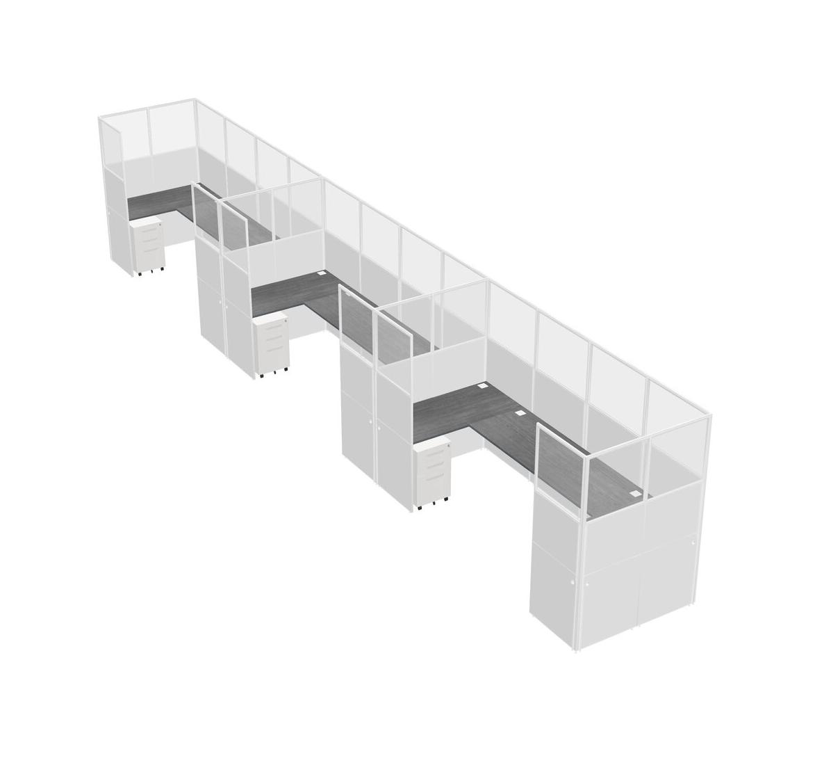 Système De Panneaux En U Gris Pour 3 Personnes + Tiroirs Mobiles En Métal Pour 3 Utilisateur(s)