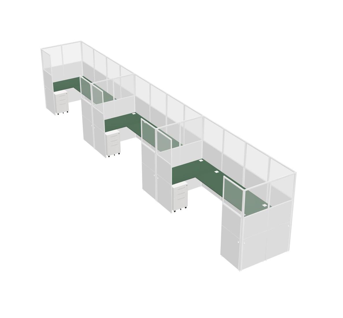 Système De Panneaux En U Vert Pour 3 Personnes + Tiroirs Mobiles En Métal Pour 3 Utilisateur(s)