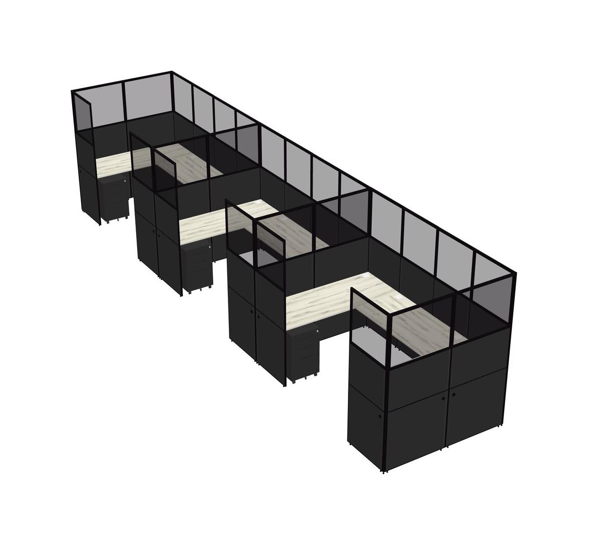 Système De Panneaux En U Heinne Holz Pour 3 Personnes + Tiroirs Mobiles En Métal Pour 3 Utilisateur(s)