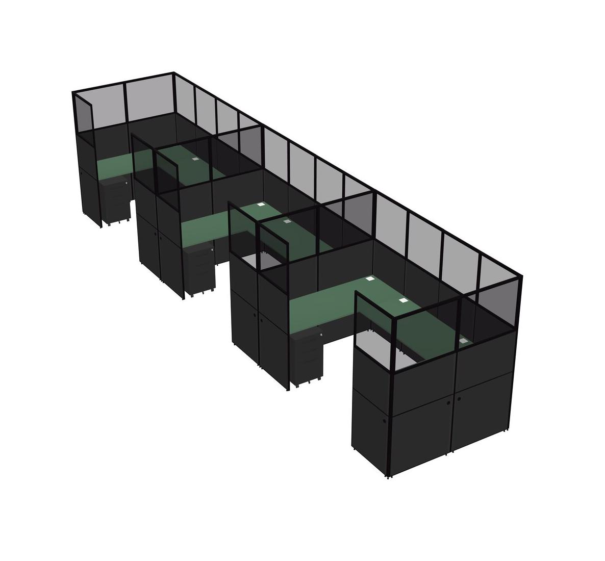 Système De Panneaux En U Vert Pour 3 Personnes + Tiroirs Mobiles En Métal Pour 3 Utilisateur(s)