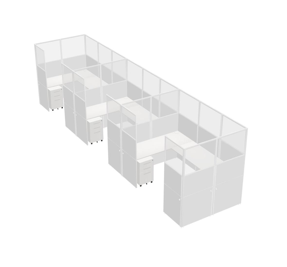 Système De Panneaux En U Blanc Pour 3 Personnes + Tiroirs Mobiles En Métal Pour 3 Utilisateur(s)
