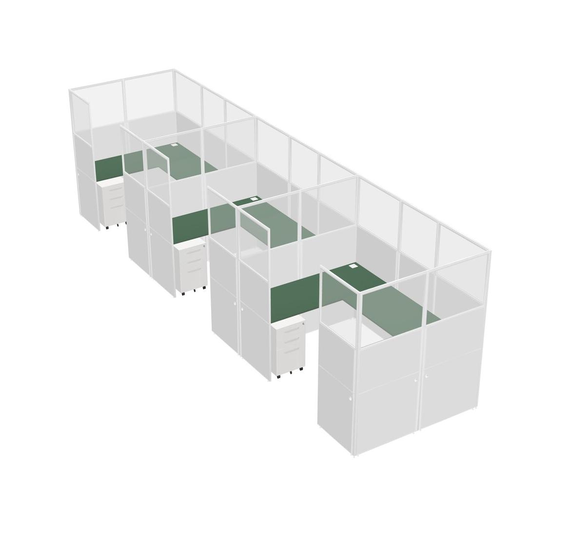 Système De Panneaux En U Vert Pour 3 Personnes + Tiroirs Mobiles En Métal Pour 3 Utilisateur(s)