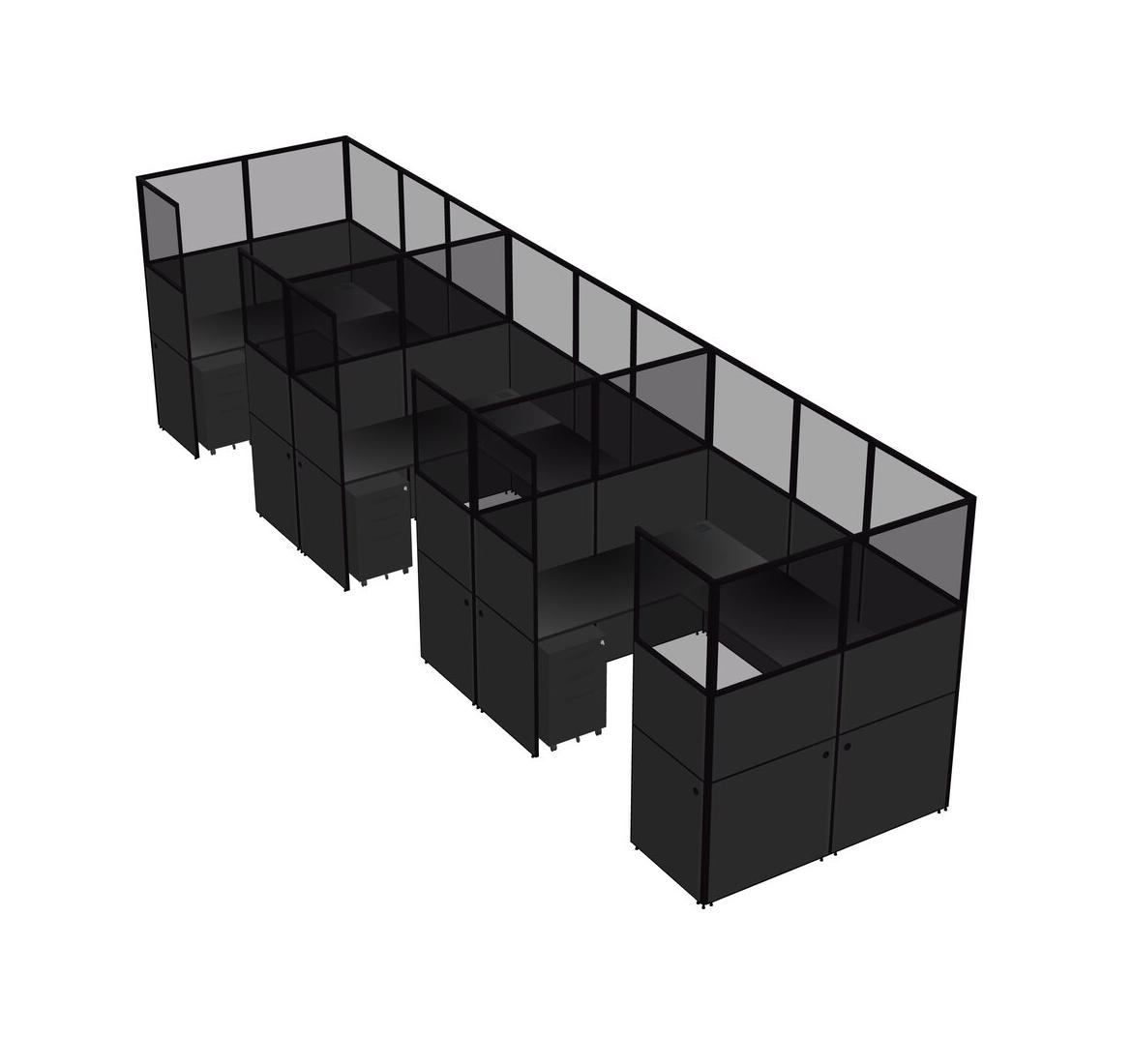 Système De Panneaux En U Noir Pour 3 Personnes + Tiroirs Mobiles En Métal Pour 3 Utilisateur(s)