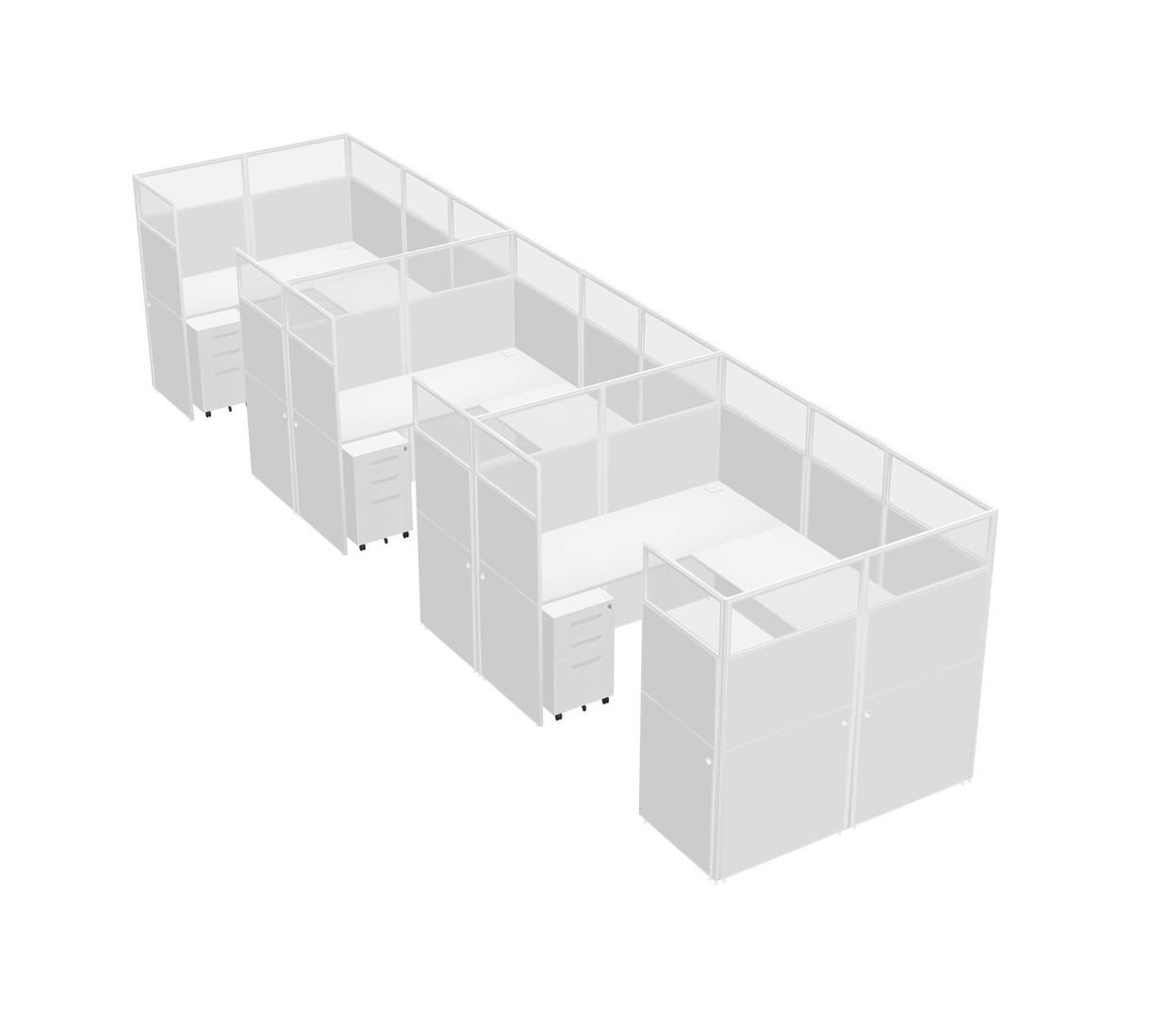 Système De Panneaux En U Blanc Pour 3 Personnes + Tiroirs Mobiles En Métal Pour 3 Utilisateur(s)