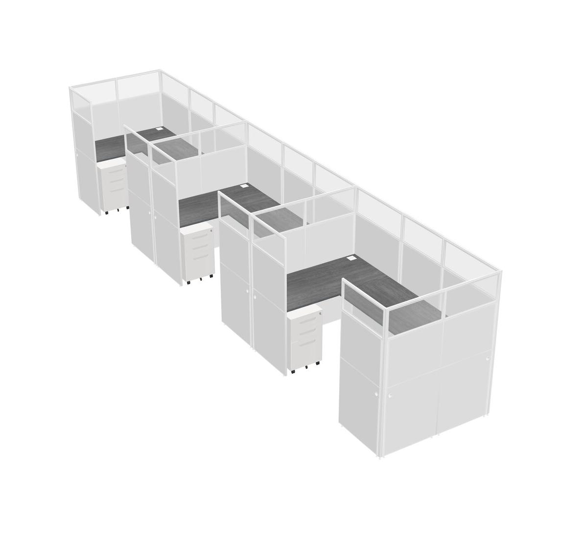 Système De Panneaux En U Gris Pour 3 Personnes + Tiroirs Mobiles En Métal Pour 3 Utilisateur(s)