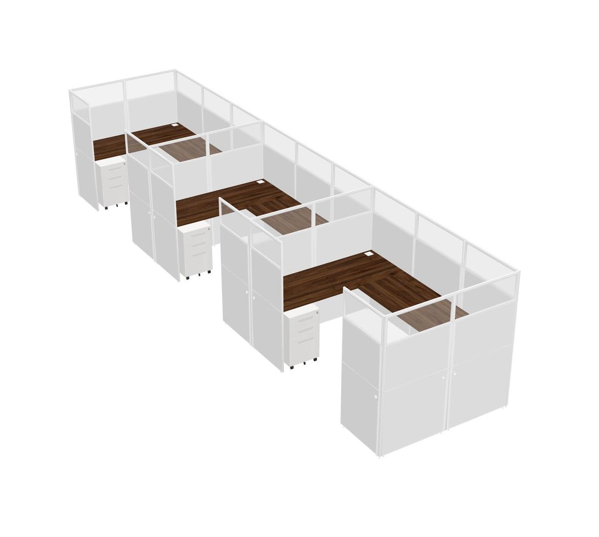 Système De Panneaux En U En Noyer Columbia Pour 3 Personnes + Tiroirs Mobiles En Métal Pour 3 Utilisateur(s)