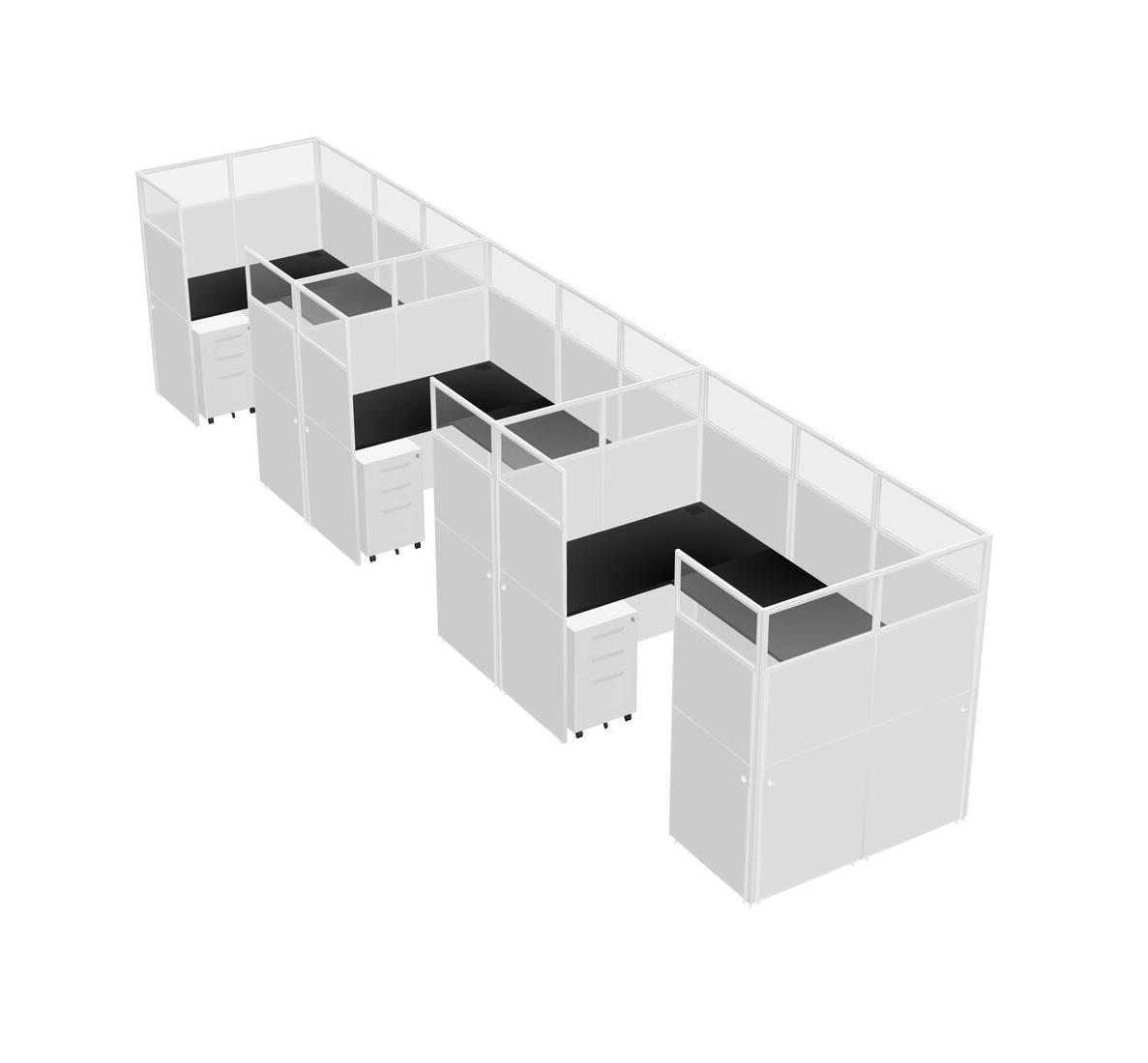 Système De Panneaux En U Noir Pour 3 Personnes + Tiroirs Mobiles En Métal Pour 3 Utilisateur(s)