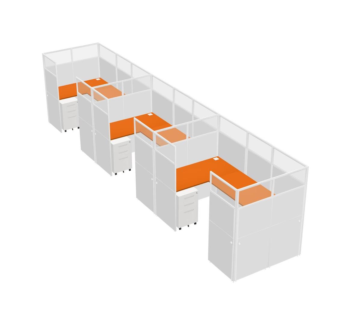 Système De Panneaux En U Orange Pour 3 Personnes + Tiroirs Mobiles En Métal Pour 3 Utilisateur(s)